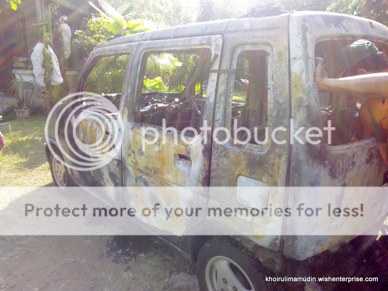 Sebuah Mobil Suzuki Karimun Terbakar Setelah Dicuci