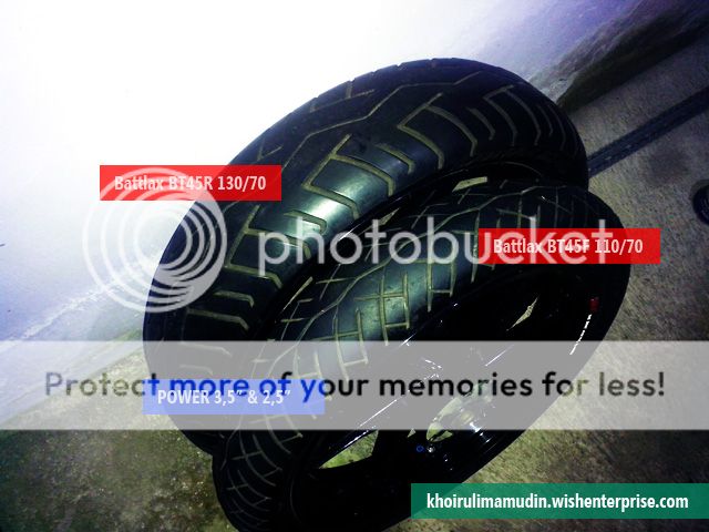 Akhirnya kena racun modifikasi juga coz lama-lama pingin upgrade kaki-kaki si pio. Awalnya sebenarnya ada pilihan antara mengupgrade kaki-kaki atau pasang bracket buat box. Tapi setelah dipikir-pikir, sementara box ada sidebag yang masih bisa diandalkan, maka pilihan jatuh ke upgrade kaki-kaki. Didukung ada tawaran dari salah seorang kenalan di Pemalang yang menawarkan velg 17 berikut ban-nya. Ya meski kondisi second, tapi pas survey di TKP masih josss, bahkan masih jauh lebih halus ban saya daripada ban second ini. Kondisi mungkin antara 90-95%, minus beberapa baret di velg karena pemakaian.